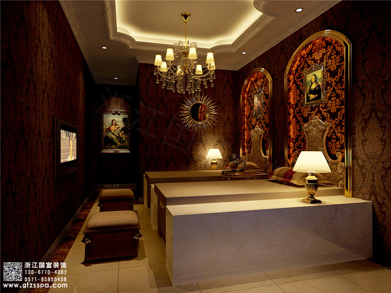 1.足療店裝修之歐式古典風格:營造華麗,作為歐洲文藝復興時期的產物,古典主義設計風格繼承了巴洛克風格中豪華、動感、多變的視覺效果,也吸取了洛可可風格中唯美、律動的細節處理元素,受到了社會上層人士的青睞。特別是古典風格中,深沉里顯露尊貴、典雅浸透豪華的設計哲學,也成為這些成功人士享受快樂,理念生活的一種那個寫照。