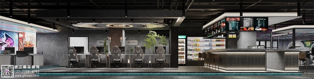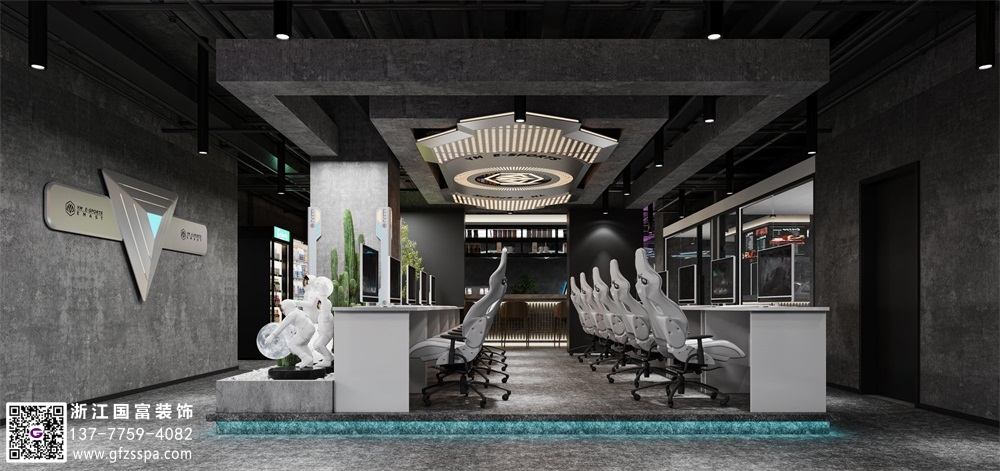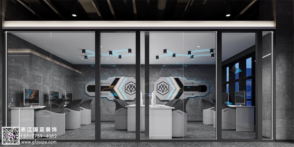 灰色工業風網咖裝修設計案例